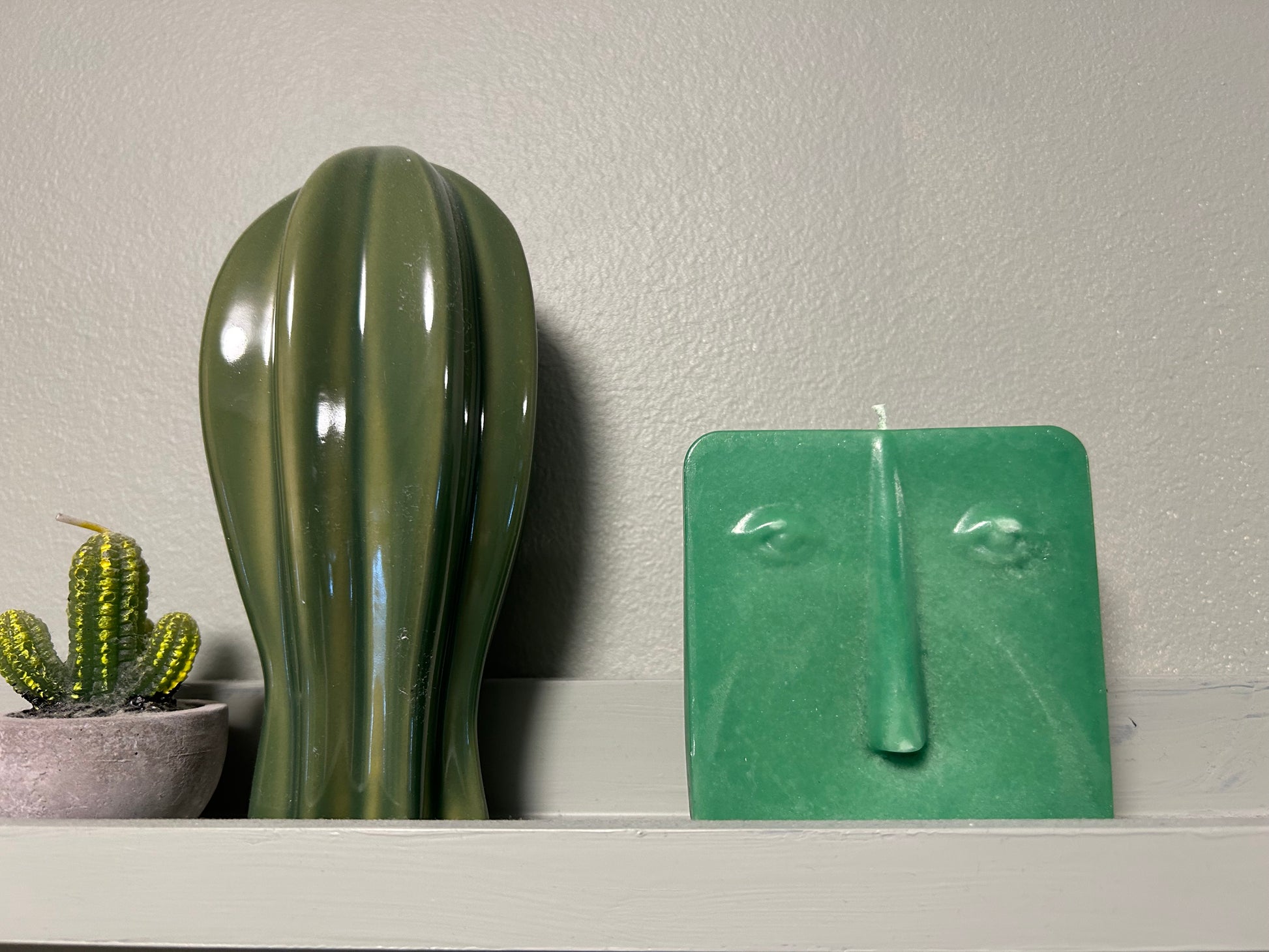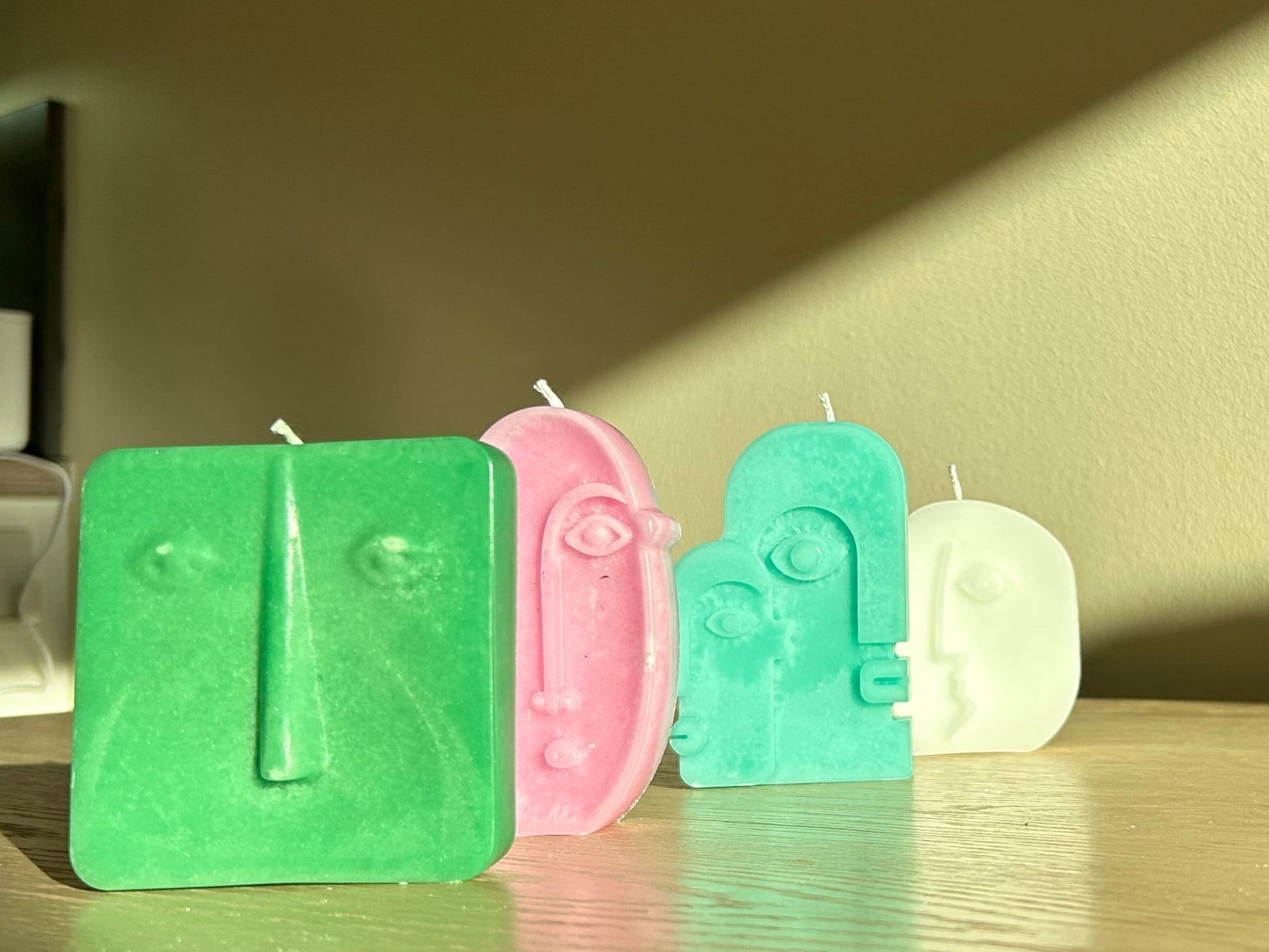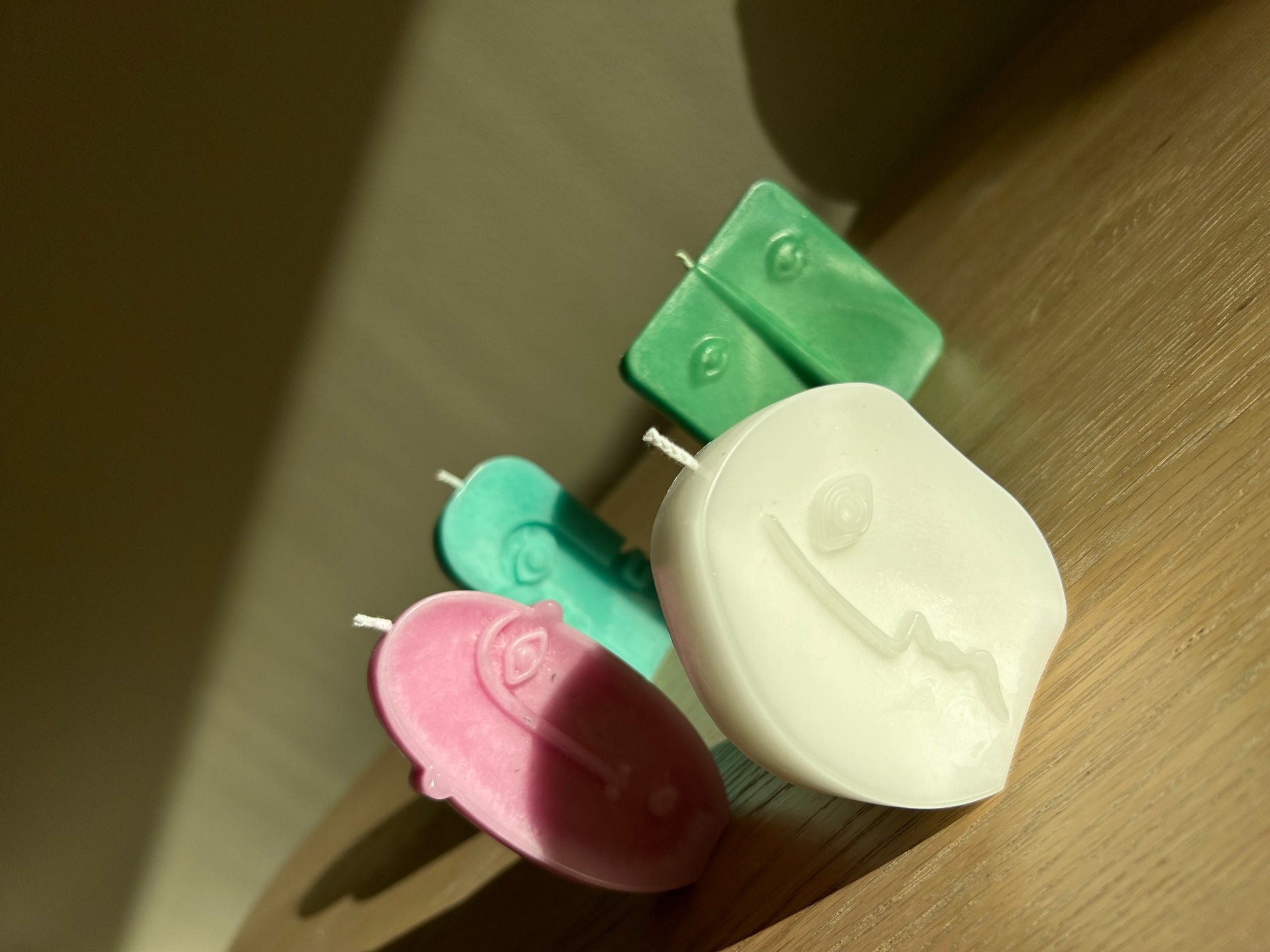 Lys formet som ansikt. Velg hvilket ansikt i hvilken farge, eller kjøp en av hver til rabattert pris.