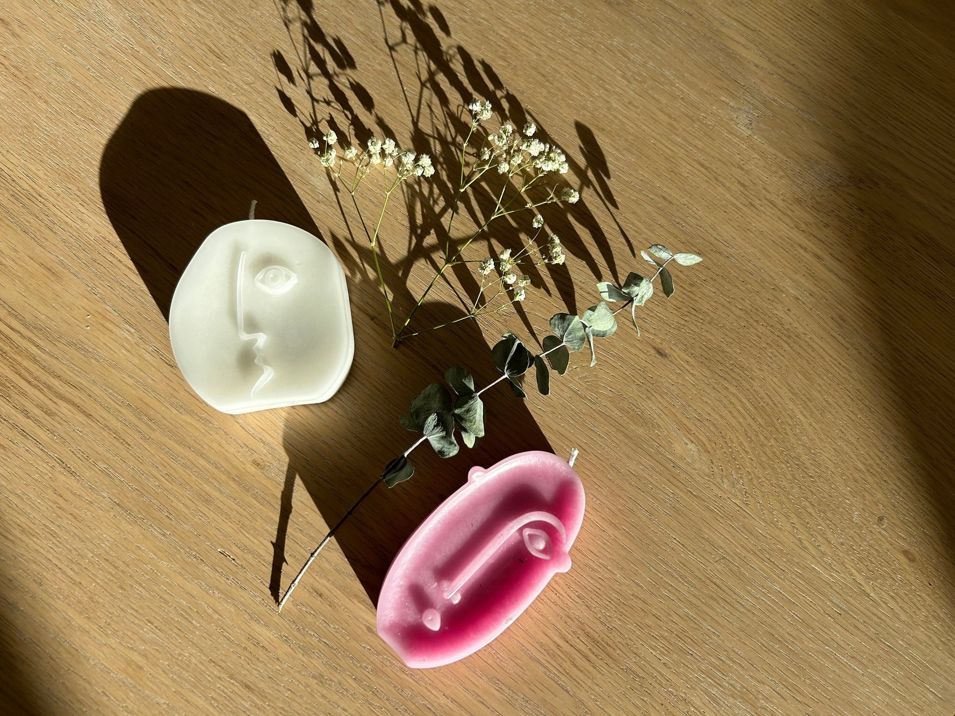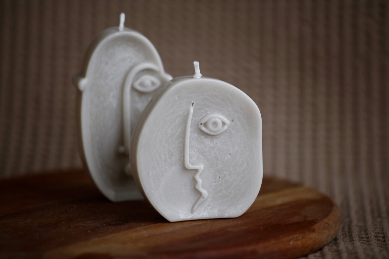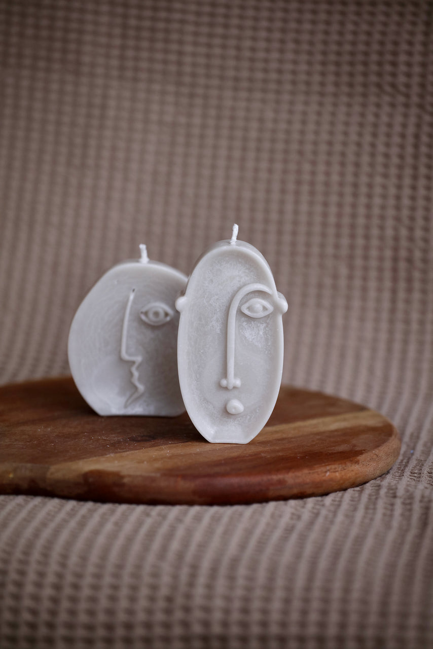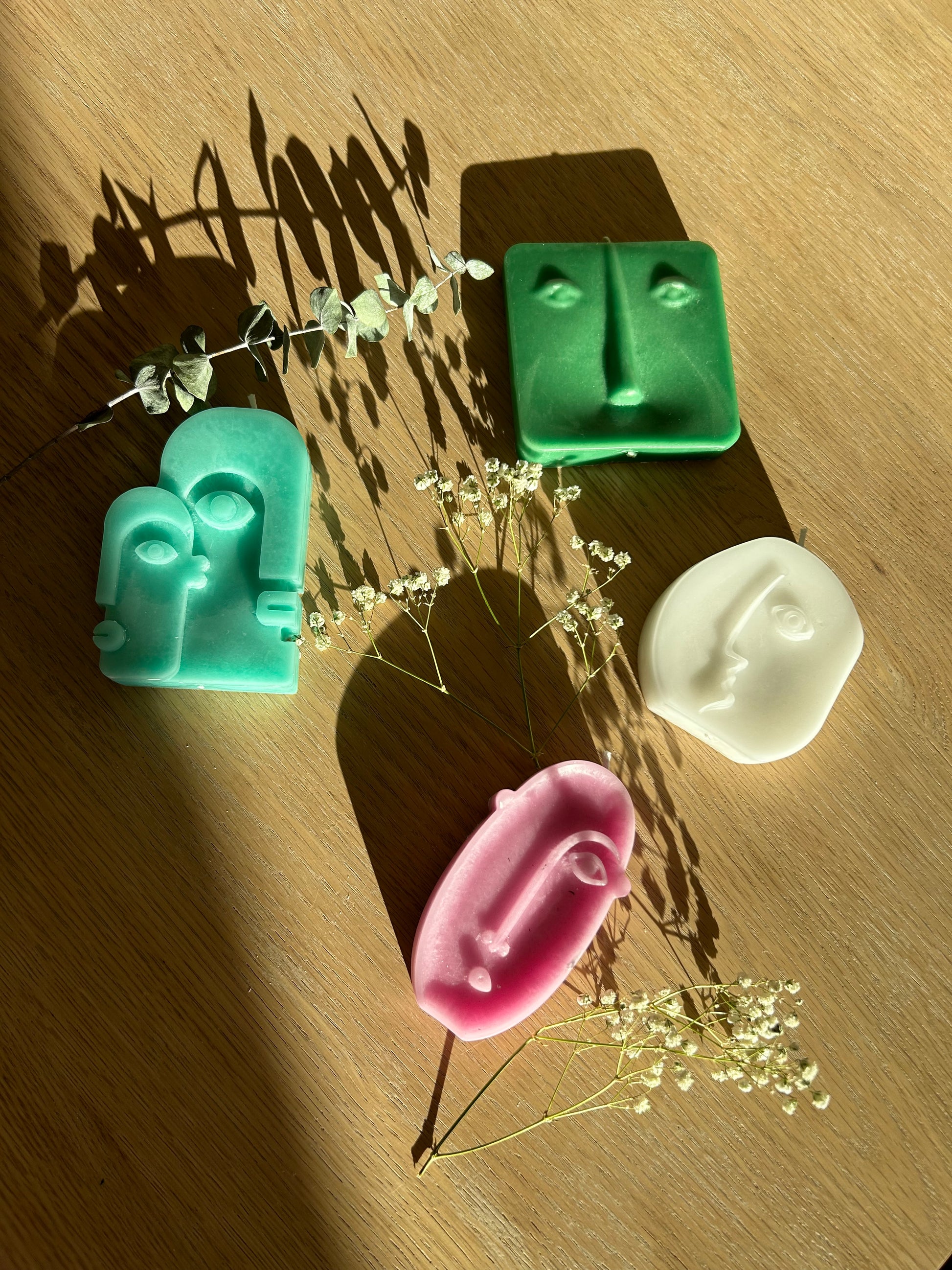 Lys formet som ansikt. Velg hvilket ansikt i hvilken farge, eller kjøp en av hver til rabattert pris.