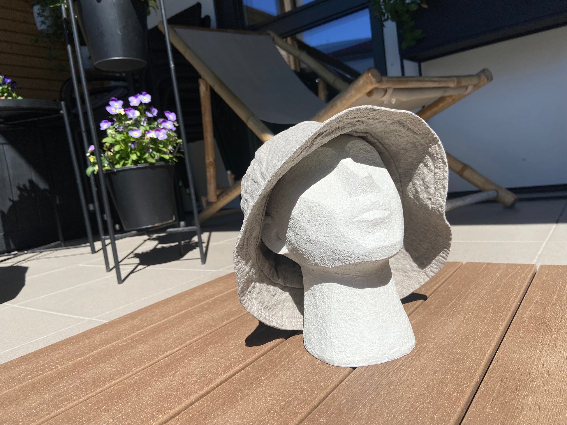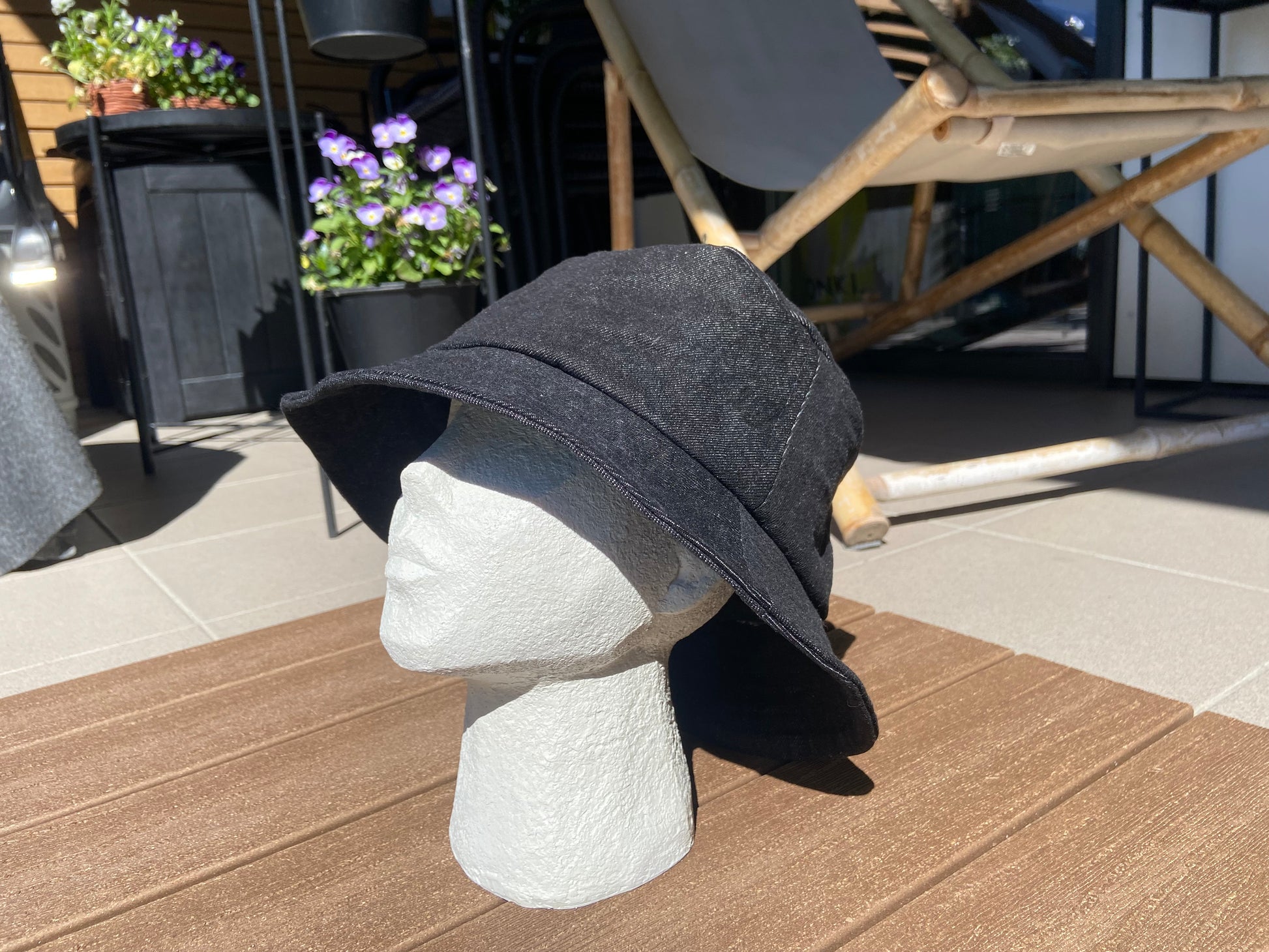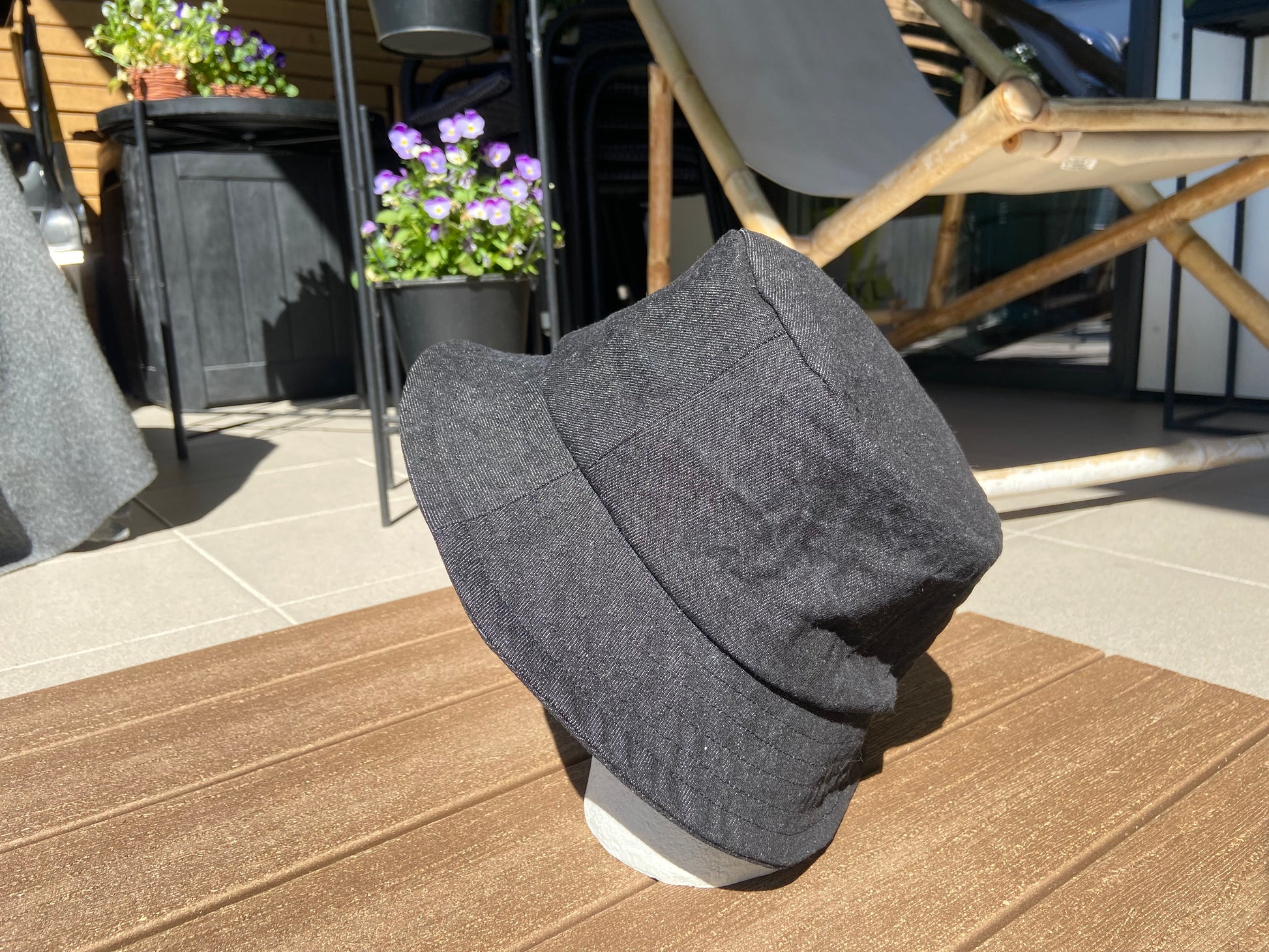 Klassisk bøttehatt. Jeg syr hattene i naturmateriale, enten i lin eller dongeri (bomull). Jeg syr hattene på bestilling, og har derfor ikke et stort lager liggende.