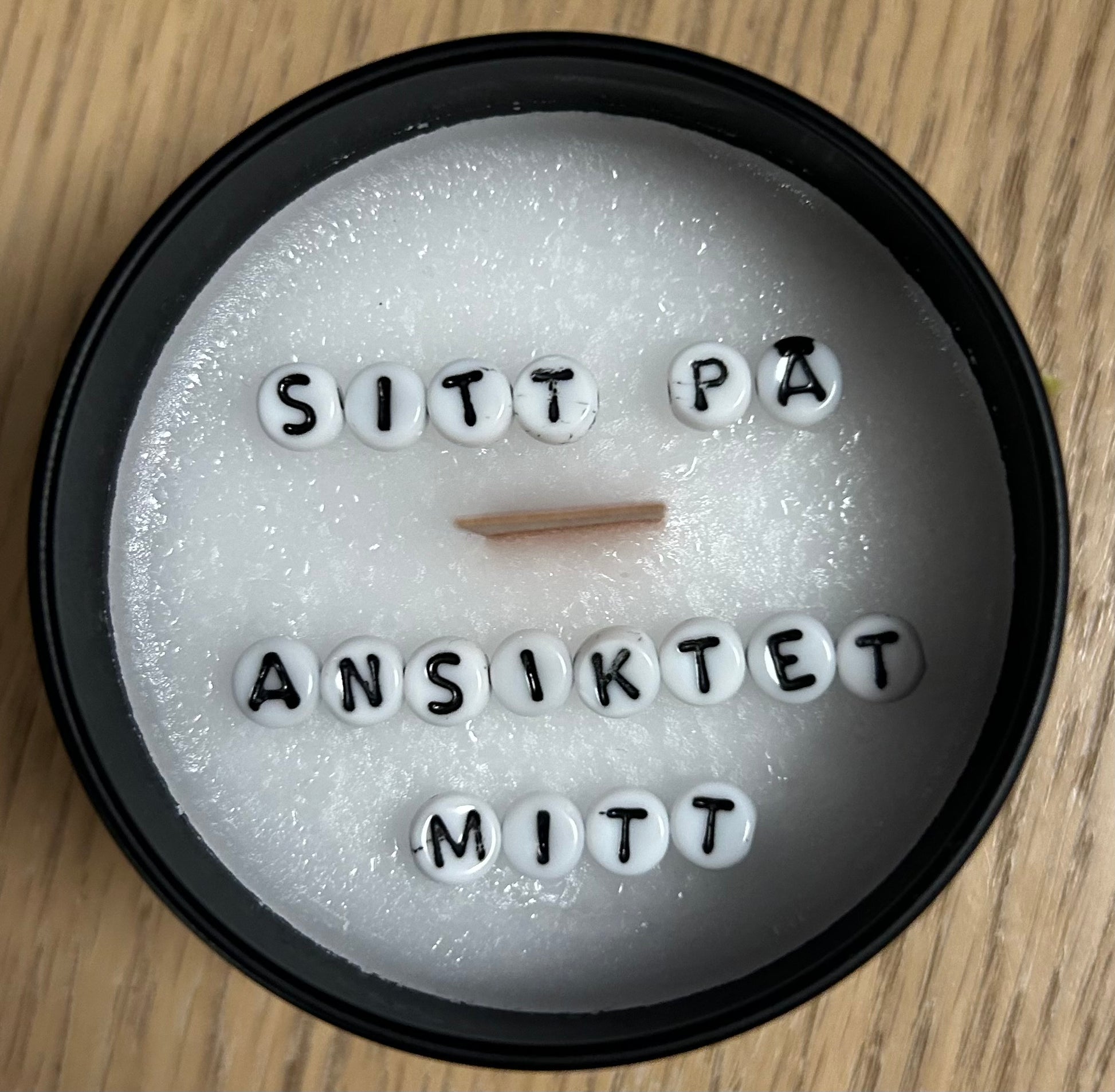 Duftlys med hemmelig beskjed (SITT PÅ ANSIKTET MITT)
