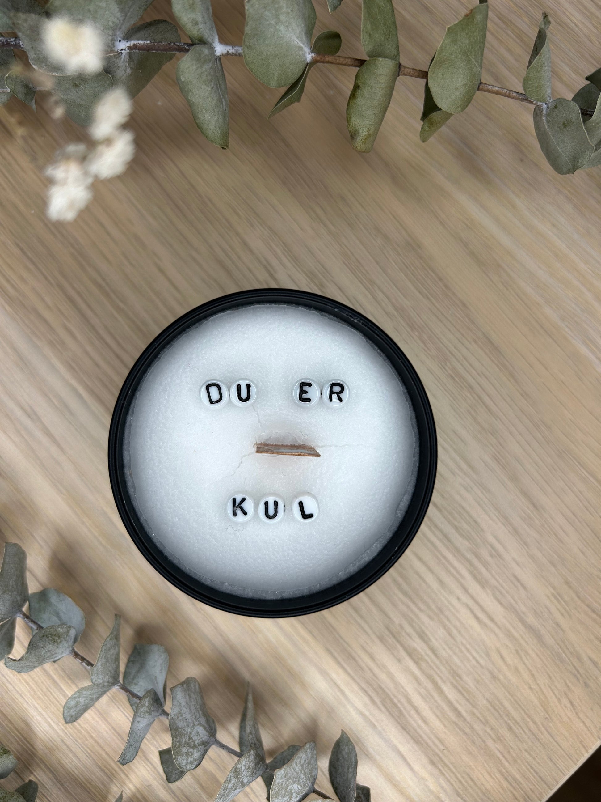 Duftlys med hemmelig beskjed (DU ER KUL/SEXY/FIN/DIGG)