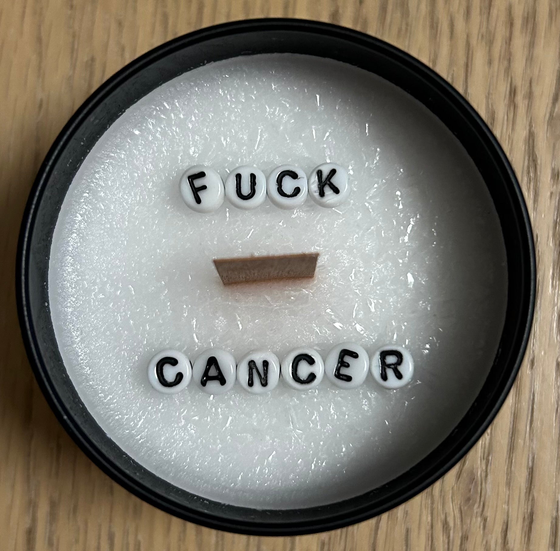 Duftlys med hemmelig beskjed (FUCK CANCER)