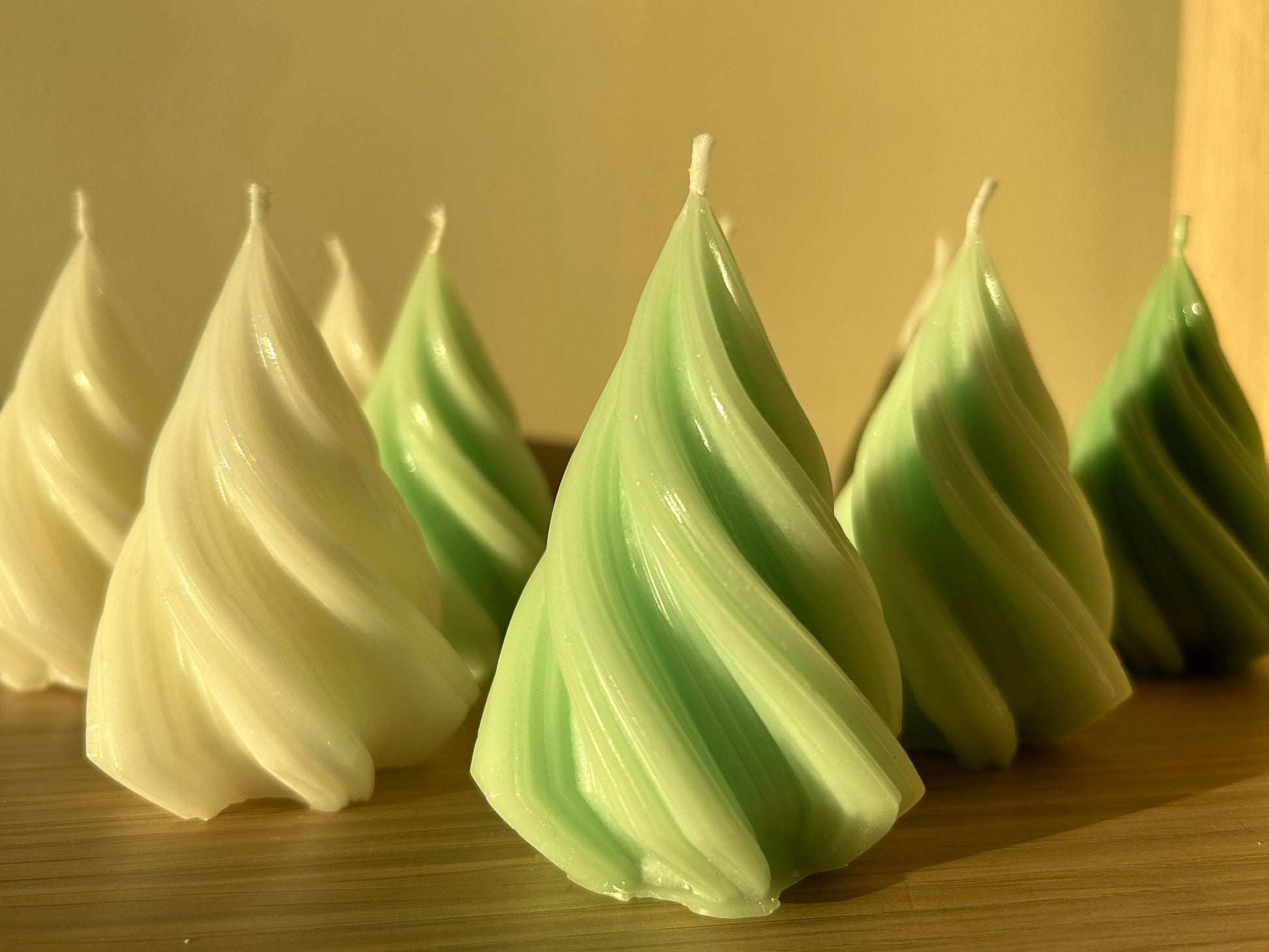 Spiraltreet er et dekorlys støpt i stearin som både er dekorativt og brenner veldig pent.