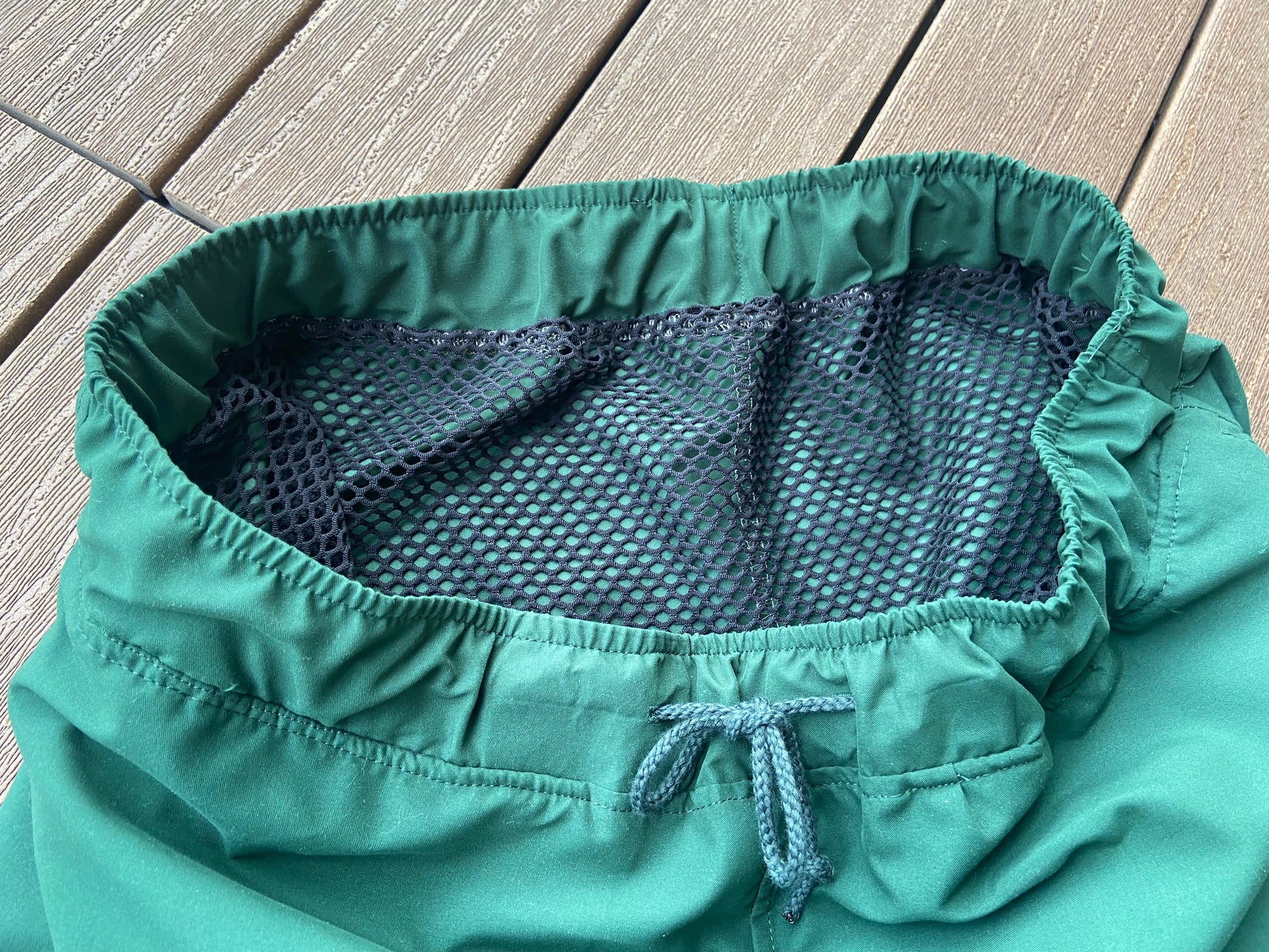 Det er en truse i netting på innsiden av shortsen, men kan lages uten. Du kan velge om du vil at shortsen skal ha lommer i sidene eller ikke. Lommene lages i nettingstoff for å ikke samle vann, de kan være praktiske til å for eksempel ha mobiltelefon eller nøkler i.