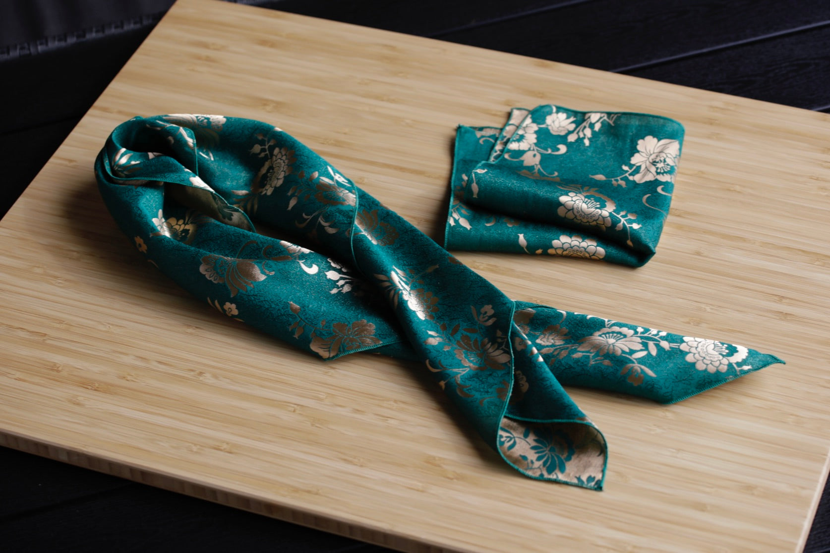 Bestill et matchende silkeskjerf og lommetørkle i 100 % silke.